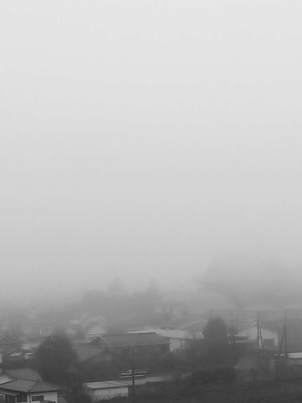 新年の華やかさも去り、そんなモヤモヤの具象のように今日は一面霧です。朝からちっとも晴れません。