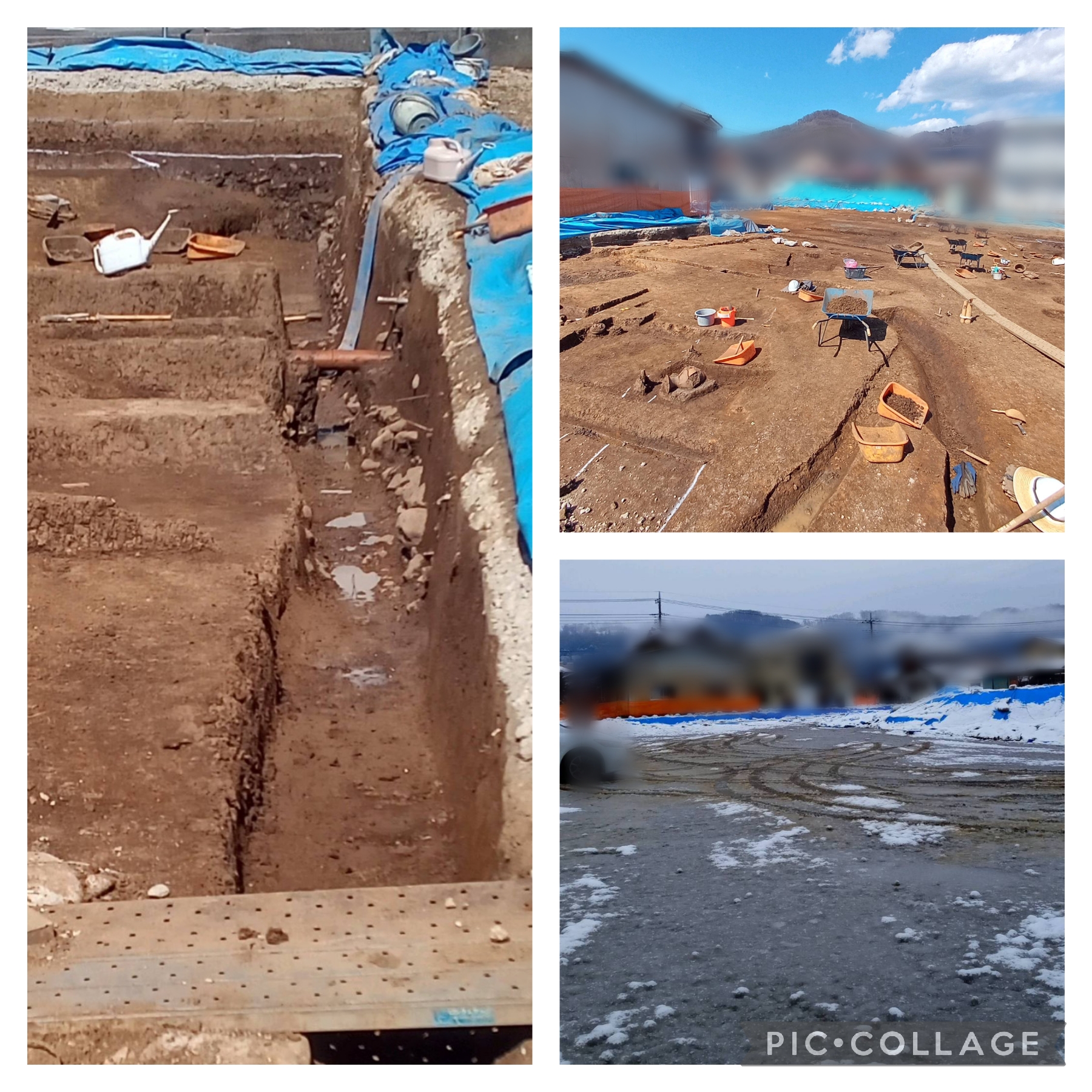 年が明けて一番寒い1月下旬からは、とある大きなお寺の門前にあたる場所の発掘でしたが、土地は広いけど出るものは少ないよと言われてしょんぼりだったのです。しかも土が悪い!!県内でも最悪と言われる粘土の土地は、濡れるとぐっちゃぐちゃのドロドロへばりつき、乾くとガッチガチの歯が立たないプラスティックのような土で、それで雪が降り氷が張り、それを手作業で掘ったり水抜きしたり本当に大変でした。