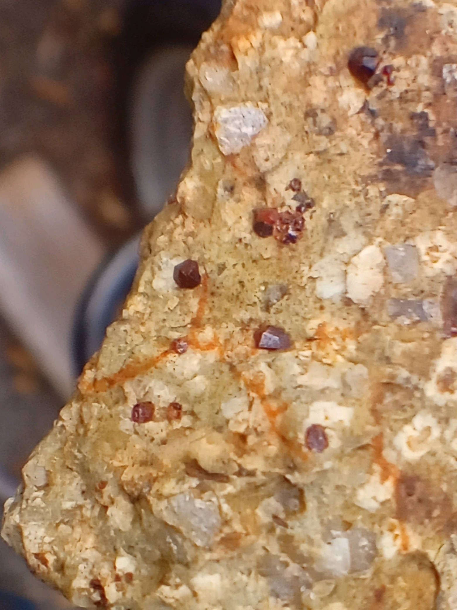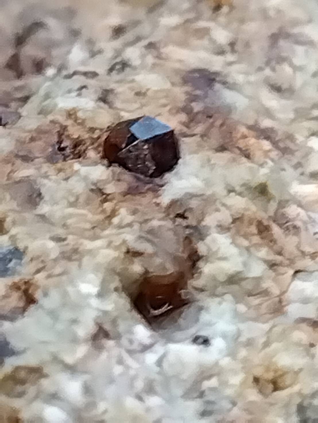 その崩れてきた石の中に黒い粒粒がありまして、それがガーネット(鉄礬柘榴石・アルマンディンガーネット)なのでありました。