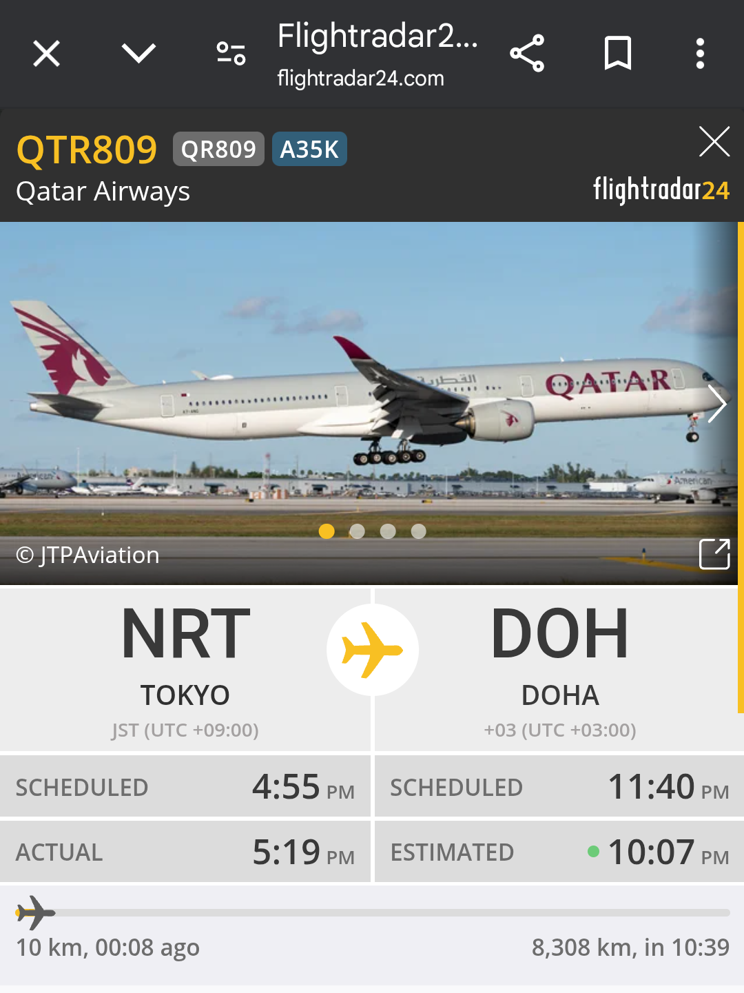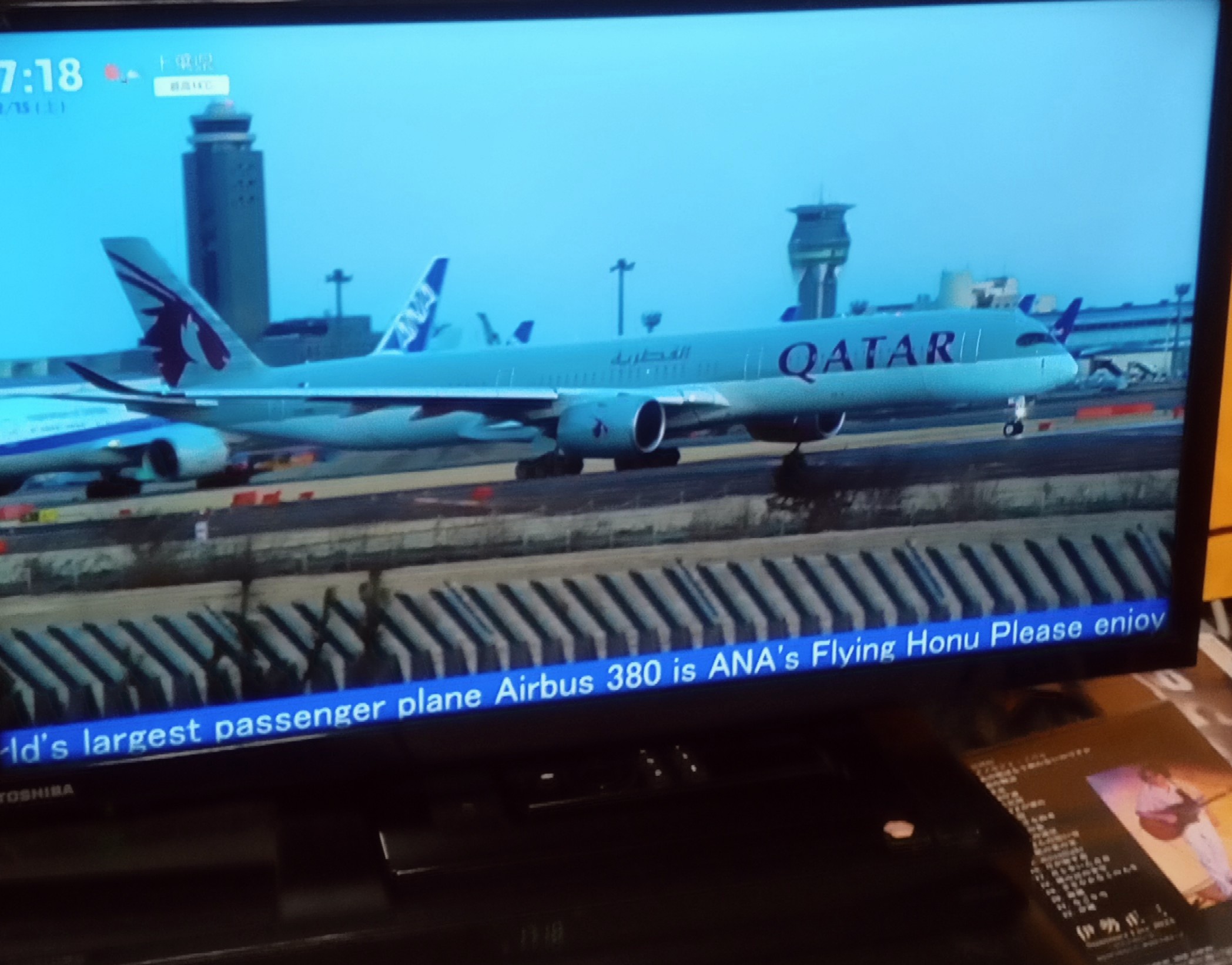 と、着陸したと思ったらなんと続けてそのカタール航空のAirbus A350が離陸するところでした。(画面の時計表示を見るとお分かりかと思います)