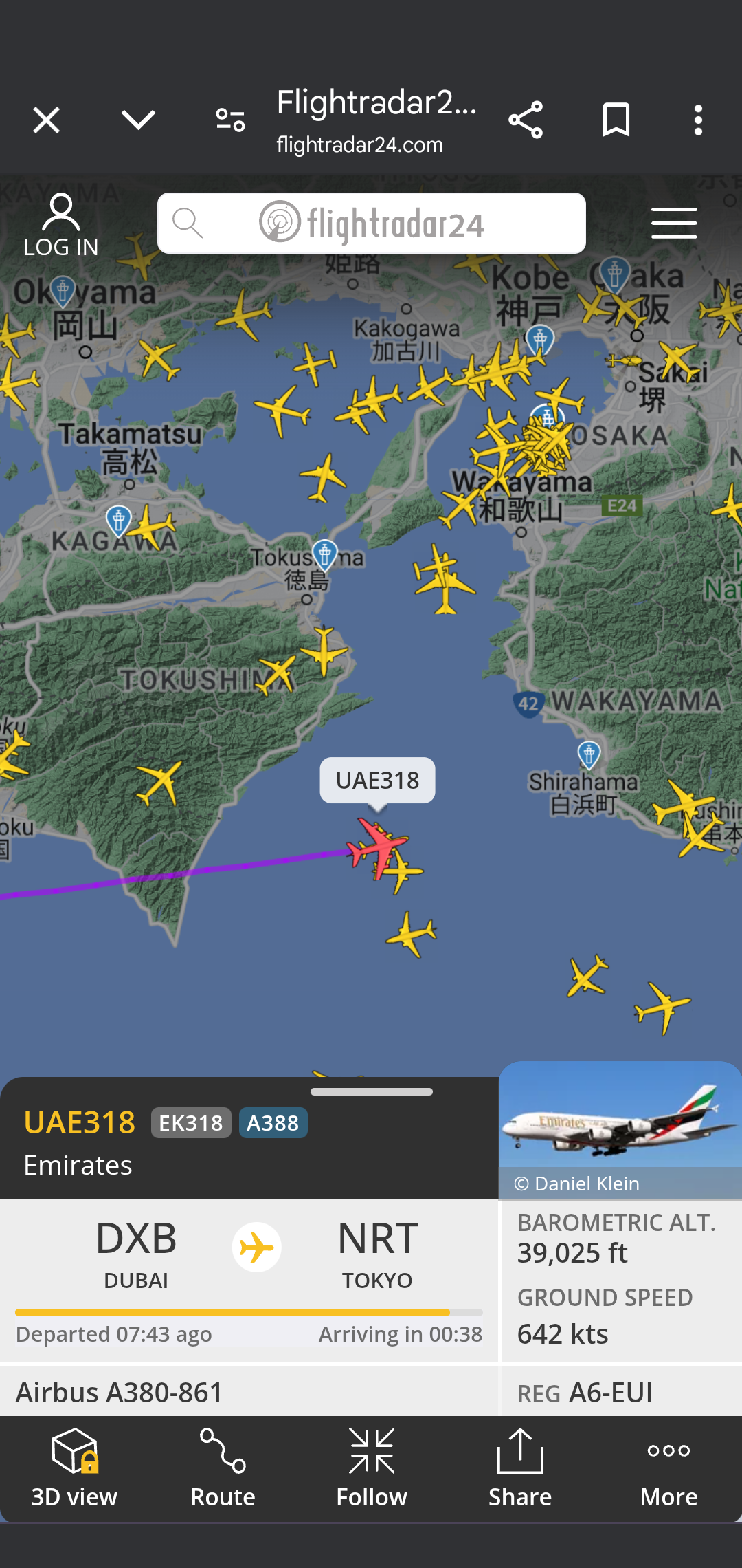 さて、どんなふうに楽しんでいるのか書こうと思ったら、ちょうどいい具合に私の大好きな超巨大二階建メガ機体のAirbus A380が成田空港に飛んでくる時間でしたので追ってみることにしました。