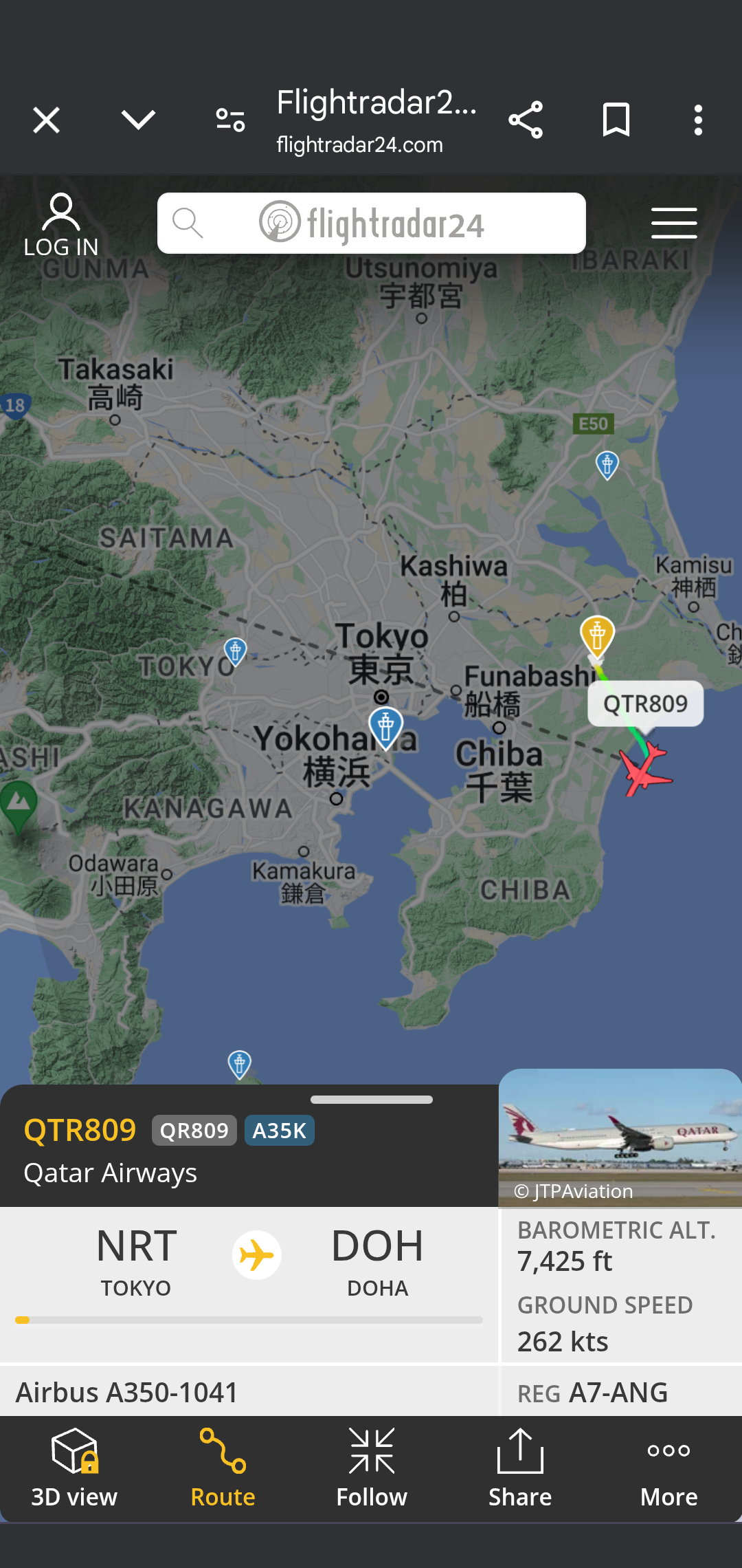 と、着陸したと思ったらなんと続けてそのカタール航空のAirbus A350が離陸するところでした。(画面の時計表示を見るとお分かりかと思います)