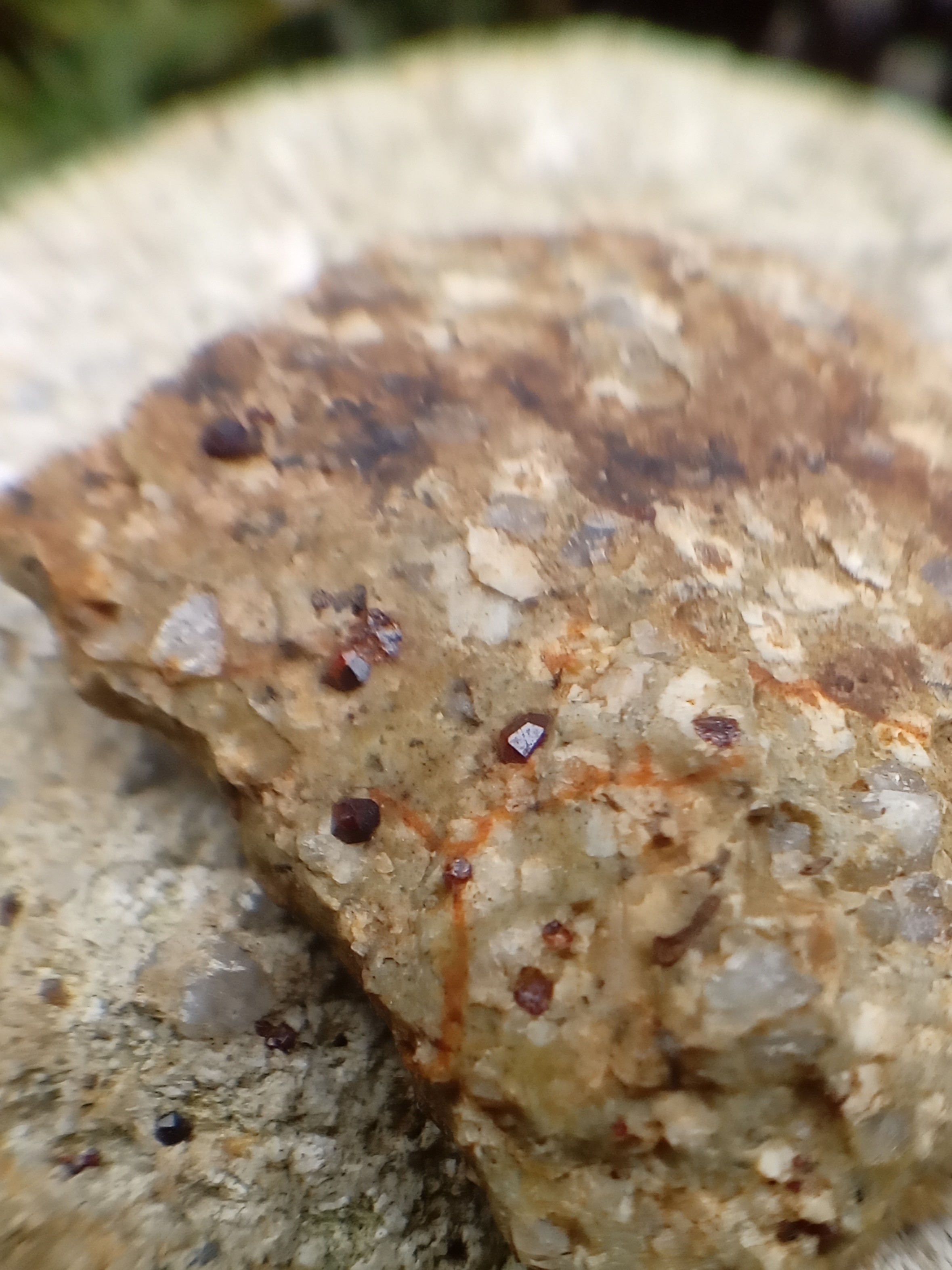 その崩れてきた石の中に黒い粒粒がありまして、それがガーネット(鉄礬柘榴石・アルマンディンガーネット)なのでありました。